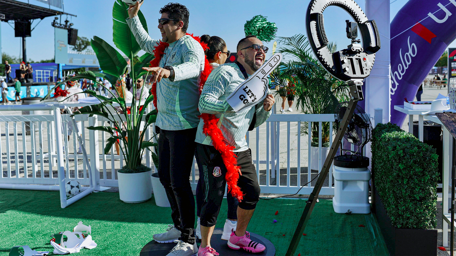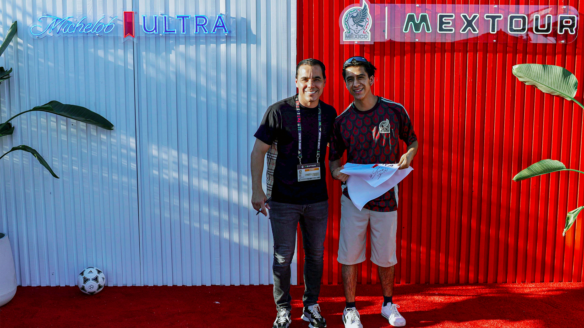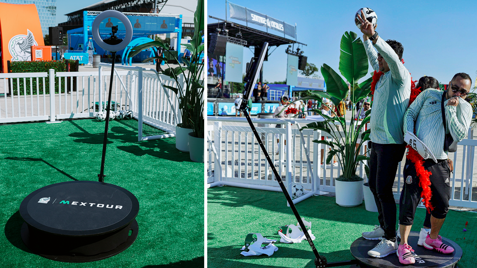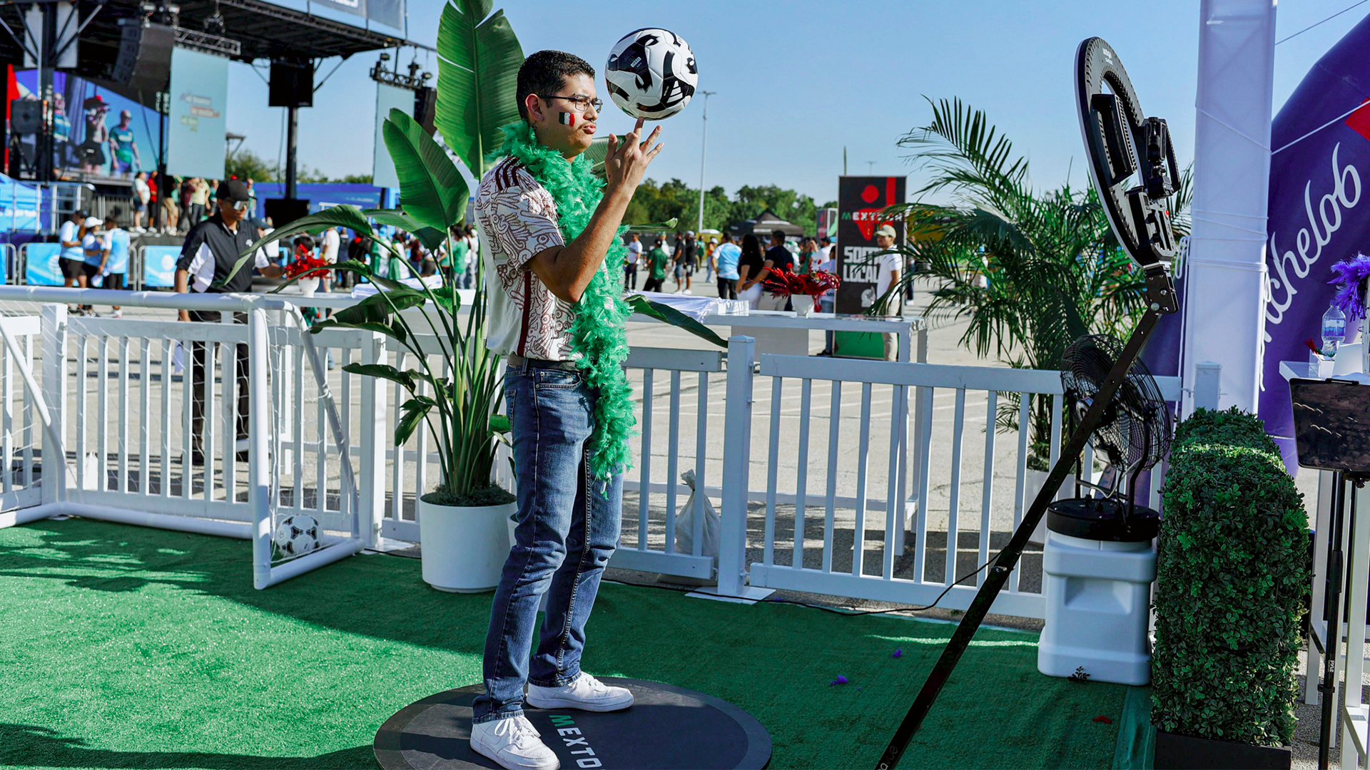 We provided a custom-branded 360 booth experience for Michelob Ultra at the Mexico vs. Canada game pre-event at AT&T Stadium. The 360 booth engaged attendees as they awaited entry, providing an interactive experience. Additionally, we offered a photography experience featuring a Mexico soccer legend in front of a custom backdrop, allowing guests to capture photos with the legend and instantly receive them on their devices
