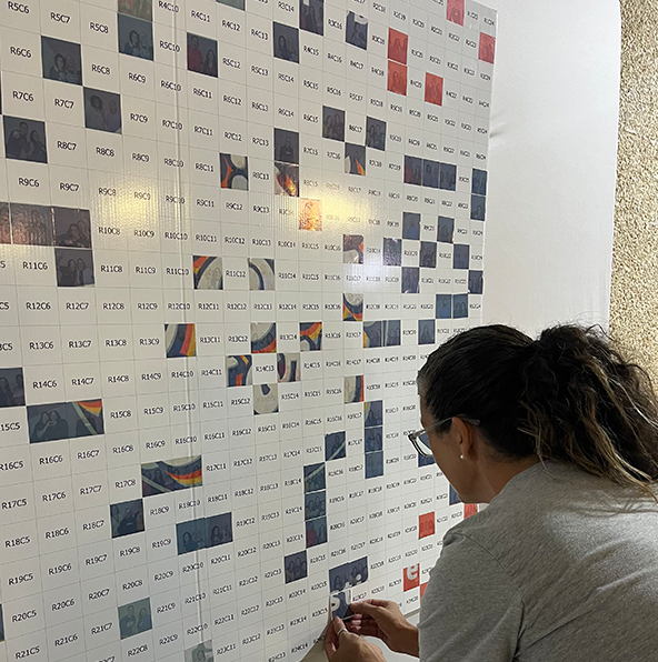 4. The photo mosaic wall then gets build during your event with all of the stickers